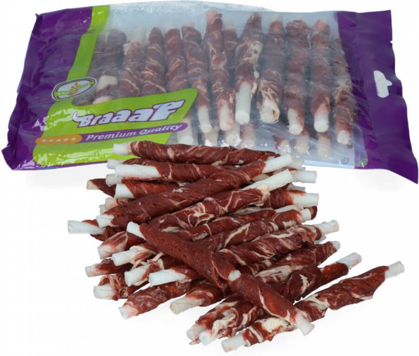 Braaaf Rol Sticks 12 cm Vlees met VisEen hond kan niet zelf bepalen wat het beste voor hem is, dat is aan jou! Kies je voor de buffelhuid snacks, dan kies je voor een gezond, hygiënisch verpakt product. De buffelhuidsnacks zijn er in allerlei soorten, maten en smaken. Daarbij zijn alle Braaaf snacks graanvrij. Er zit zeker iets voor jouw hond bij! Een schonere en dus gezondere huid met minder afvalstoffen herken je aan de kleur. * Goed voor gebit en adem * Graanvrij* Zeer hoge acceptatie * IFS gecertificeerd.