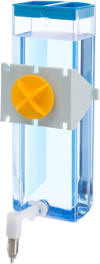 De drinkfles die ontwikkeld is door Ferplast verstrekt water naar behoefte. Het flesje is gemaakt van kunststof en de drinktuit is van roestvrijstaal. Het drinkflesje is op twee manieren te bevestigen, afhankelijk van het type kooi dat je hebt. Zo kan je hem met een draaiknop bevestigen tussen de tralies of door middel van zuignappen aan een kunststof kooi. De bovenkant kan je loshalen, waardoor je makkelijk het flesje kunt vullen en verversen.