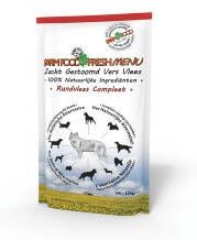 Farm Food Fresh Menu Fresh Menu van Farm Food is een natuurlijke, smakelijke en complete maaltijd voor uw hond. Een pouch bevat zachtgestoomd vers vlees dat geschikt is voor honden van alle rassen en leeftijden. Dit voer kan als alternatief voor of als aanvulling op een diepvriesvleesmenu gegeven worden. Fresh Menu is vrij van gevogelte en wordt geproduceerd met dierlijke ingrediënten die goedgekeurd zijn voor menselijke consumptie. Tevens is de voeding een bron van prebiotica. Deze goede bacteriën dragen bij aan een gezonde darmflora. Farm Food Fresh Menu bevat een hoge hoeveelheid aan calorieën en heeft daarnaast een hoge acceptatie. Hierdoor is de voeding zeer geschikt voor moeilijke eters. Farm Food Fresh Menu Rundvlees Compleet Rundvlees Compleet is een portieverpakking boordevol rundvlees. Het voer wordt aangevuld met bouillon, lever, rijst en oliën. Deze voeding bevat, uitgezonderd hart en pens, geen orgaanvlees. De combinatie van deze ingrediënten zorgt voor een complete, natuurlijke en smakelijke maaltijd voor uw hond. Eigenschappen Kan bewaard worden buiten de koelkast Natuurlijk Glutenvrij Vrij van gemalen bot Vrij van gevogelte Door de hoge acceptatie zeer geschikt voor moeilijke eters Bevat een hoge hoeveelheid aan calorieën Bron van prebiotica, ondersteunt de darmflora Te mengen met Farm Food HE Vrij van chemische anti-oxidanten, conserveermiddel, bindmiddelen en kleur-, geur- en smaakstoffen Inhoud 16 x 125 of 6 x 300 gram Samenstelling Runderhart (32%), runderbouillon, runderpens, rundvlees (9%), runderlever, rijst, Schotse zalmolie (0,3%), zonnebloemolie (koudgeperst), mineralen, vitaminen, sporenelementen. Ook verkrijgbaar als Fresh Menu Hart & Pens Compleet.