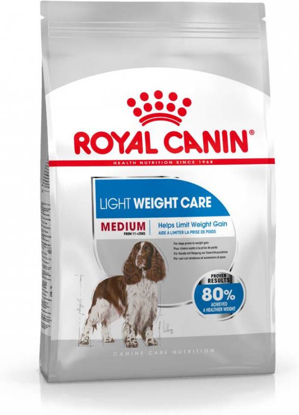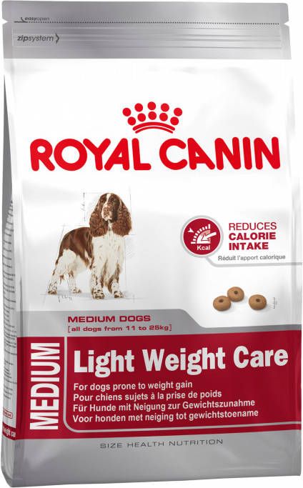 Royal Canin Light Weight Care Medium is verkrijgbaar in 3 kg en 10 kg.