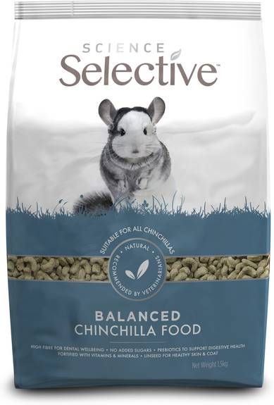 Supreme Science Selective ChincillavoerSupreme Science Selective Chincilla is een complete en evenwichtige voeding voor chinchilla’s op basis van weegbree, peterselie en lijnzaad. De stevige en vezelrijke brok bevordert de spijsvertering en stimuleert het knagen waardoor de tanden in topconditie blijven. Dankzij de uniforme brok kunnen chinchilla’s niet meer selectief eten en krijgen ze dus alle benodigde voedingsstoffen binnen. * Voorkomt selectief eten * Hoog vezelgehalte (19%) voor een gezonde spijsvertering en bevordert gebitsslijtage * Bevordert de groei van goedaardige bacteriën in het spijsverteringskanaal * Bevat lijnzaad, een uitstekende bron van Omega 3&6 voor een gezonde huid en vacht * Zeer smakelijk en gezond door de weegbree, peterselie en het lijnzaad * Zeer laag vetgehalte * Zonder toegevoegde suiker en kleurstoffen.