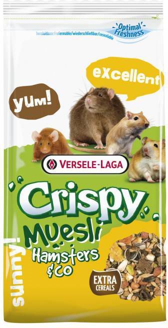 Versela-Laga Crispy HamstermuesliHamster Crispy is een volledig dierenvoer voor hamsters en komt dus volledig tegemoet aan de voedingsbehoeften van deze diertjes. Hamster Crispy bevat extra Vitamine E, noten, pitten en granen.