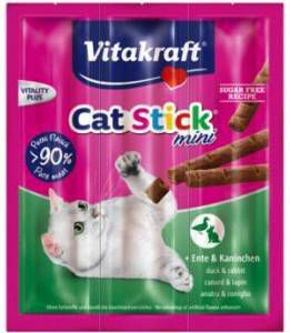 Vitakraft Catsticks Mini Eend-Konijn De Vitakraft Catsticks hebben een heerlijke geur, onweerstaanbare smaak en zijn zonder kunstmatige smaakversterkers.